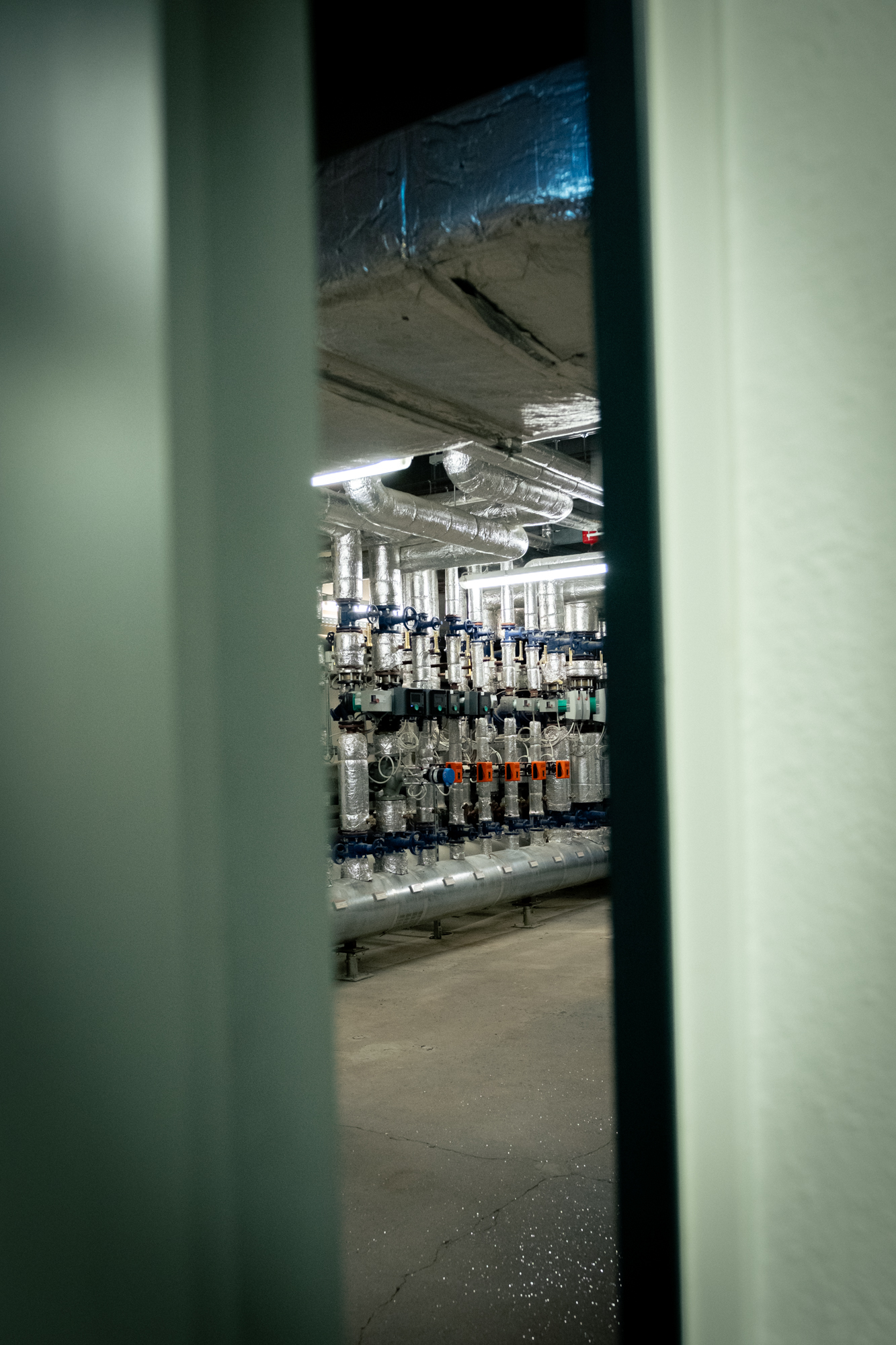 Deen nämmlechten Dag gi mer op weider Rendez-vouse matgeholl: Zum Beispill bei déi zwee Chauffagiste vun der Gemeng Suessem, déi sech déi véier Uertschaften – een ass fir Bieles zoustänneg, deen anere fir Éilereng, Suessem an Zolwer – ënnerteneen opdeelen. „Dat ass e Full-Time-Job”, erkläert eis de Sylvain. „Wann eemol eng Pann ass, da si mir och séier do, bannent 30 Minutten. Da gi mer och scho mol owes aus dem Bett geheit.“ Um Scheierhaff – „do hu mer eng grouss Zentral, déi beliwwert déi ganz Gebaier do mat Hëtzt” – kréie mer en exklusiven Abléck hannert d’Kulissen: Mir sti beemol am risegen Heizungskeller, dee sech ënnert der Schwämm befënnt. Et ass waarm an et bléist, well sech direkt niewendrun och d’Ventilatioun befënnt.