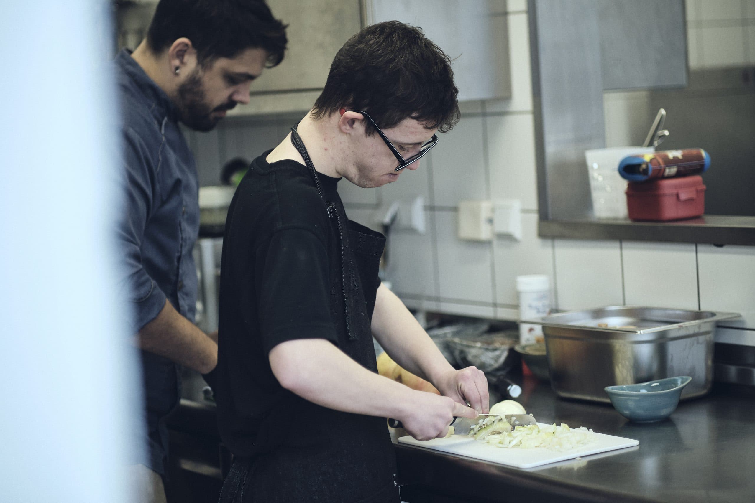 De Kach Steven Kukawka ënnersträicht, wéi vill den Edoardo an där kuerzer Zäit geléiert huet. Et mierkt een datt hien houfreg dorop ass, datt den Edo, wéi hie vu sengen Aarbechtskolleege léif genannt gëtt, elo scho villes selbstänneg mécht. « Ech hunn nach ëmmer gäre mat Léierbouwe respektiv Léiermeedercher zesummegeschafft an et ass hei eigentlech net vill anescht, wéi op menge Plaze virdrun», erkläert de Steven. Si zwee wieren immens staark an der Kichen a géife sech déi eenzel Aarbechtsschrëtt séier mierken. Beréierungsängscht oder Bedenke fir mat Mënsche mat Trisomie21 ze schaffen hat de Steven keng. Vläicht och well hien duerch seng Mamm, déi och an engem Atelier schafft, oder duerch seng Vakanzenjobs an deem Beräich, fréi a Kontakt mat Mënsche mat kognitiven Aschränkunge koum.