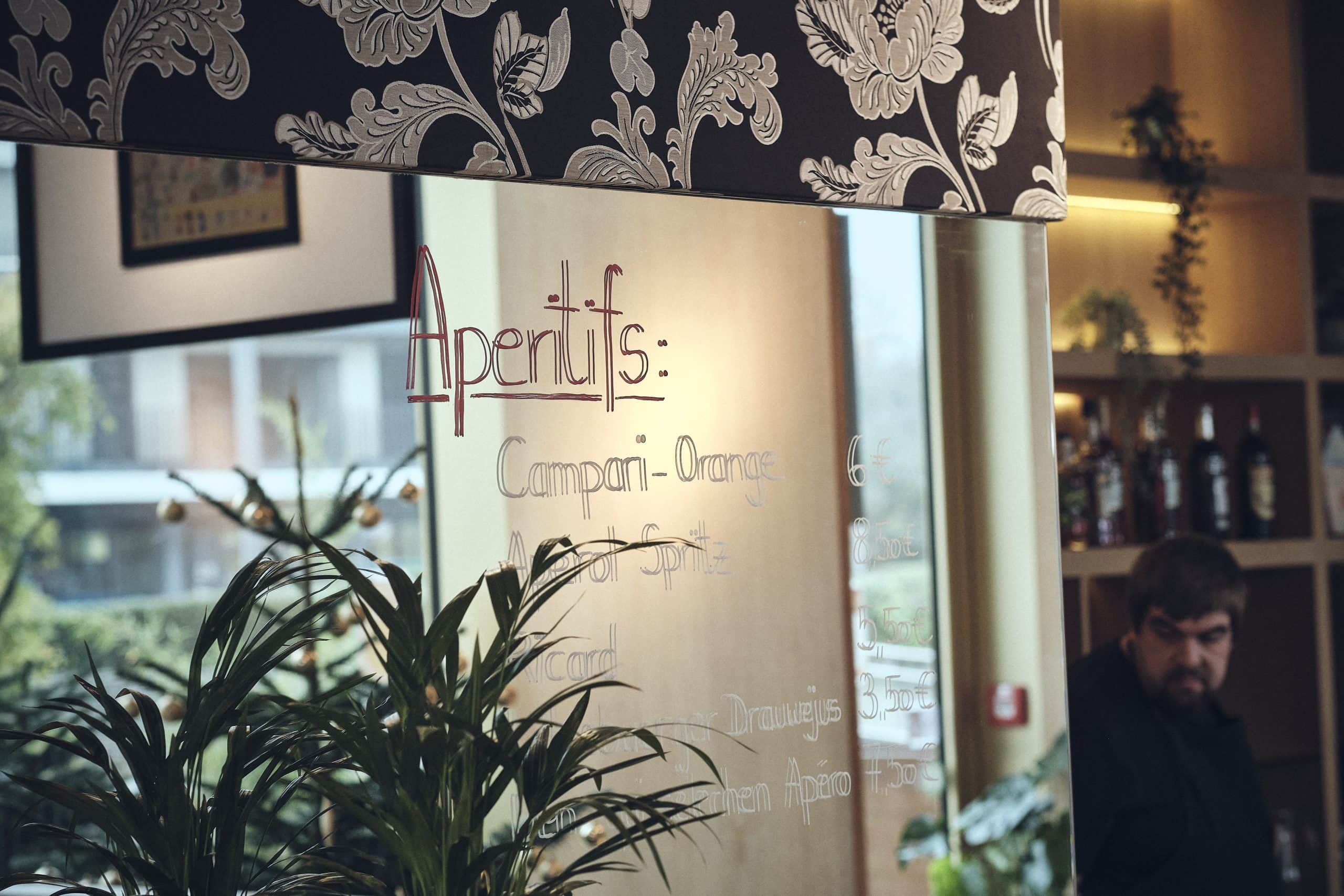Dee Wonsch huet de Mann hannert der Bar och. De Bob huet virdrun an engem Atelier an der Schräinerei geschafft, mee hie seet, datt dat hien net sou ausgefëllt huet wéi dat hei. « Et ass jiddweree fein hei, mir gi gutt betreit an d’Aarbecht hannert dem Comptoir mécht mir vill Spaass. », a weist op d’Gedrénks, dat genau wéi d’Iessen haaptsächlech aus lokalen, regionalen a saisonale Produite besteet.