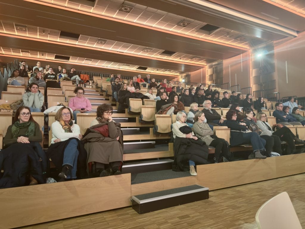 Den Artikuss ass an der Däischtert. D’Publikum gëtt kee Mucks vu sech wärenddeems den Ofspann op der Leinwand leeft. Schliisslech erstraalt d’Bün an orangem Liicht an déi sechs Intervenanten huelen hier Plazen an. E liicht Opootme geet duerch de Sall. Gewise gouf den Hors d’Haleine vum Eric Lamhène, deen dem Emma säi Werdegang als Affer vun haislecher Gewalt a senge verschiddene Facettë vun intensiven Emotiounen, onsiichtbare Verletzungen an enger immenser Resilienz weist.